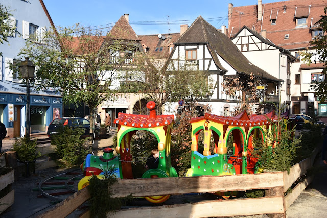 Obernai tiene fama por su gastronomía y por los vinos, y a pesar de la hora que era no podíamos irnos al Castillo de Haut-Koenisbourg sin probarlo, así que pedimos en uno de los puestos del mercadillo de la place du Beffroi, nada más y nada menos, que una botella de Gewurztraminer (14€), vino que nos habían recomendado y que también recomendamos. No os alarméis, nos tomamos una copita y el resto nos lo llevamos para el resto del día.