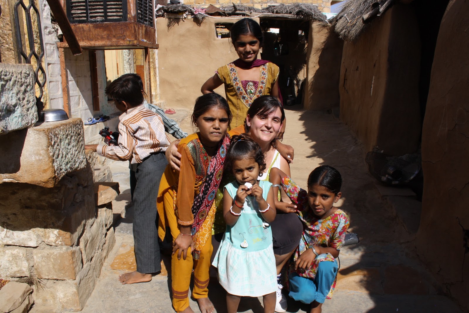 Dejamos las maletas y casi corriendo salimos, estábamos ansiosas de India. Nos dirigíamos al fuerte cuando nos encontramos con unos niños empeñados en que entrásemos a su casasin pensárnoslo dos veces allí que nos metimos. Conocimos a sus humildes familias que nos enseñaron donde vivían como que de un palacio se tratara, cuando en realidad no tenían nada, solamente un puchero donde cocinar sobre un fuego que hacían en el suelo. Estuvimos jugando con ellos un buen rato y nos despedimos hasta la mañana siguiente que prometimos llevarles unos juguetes.