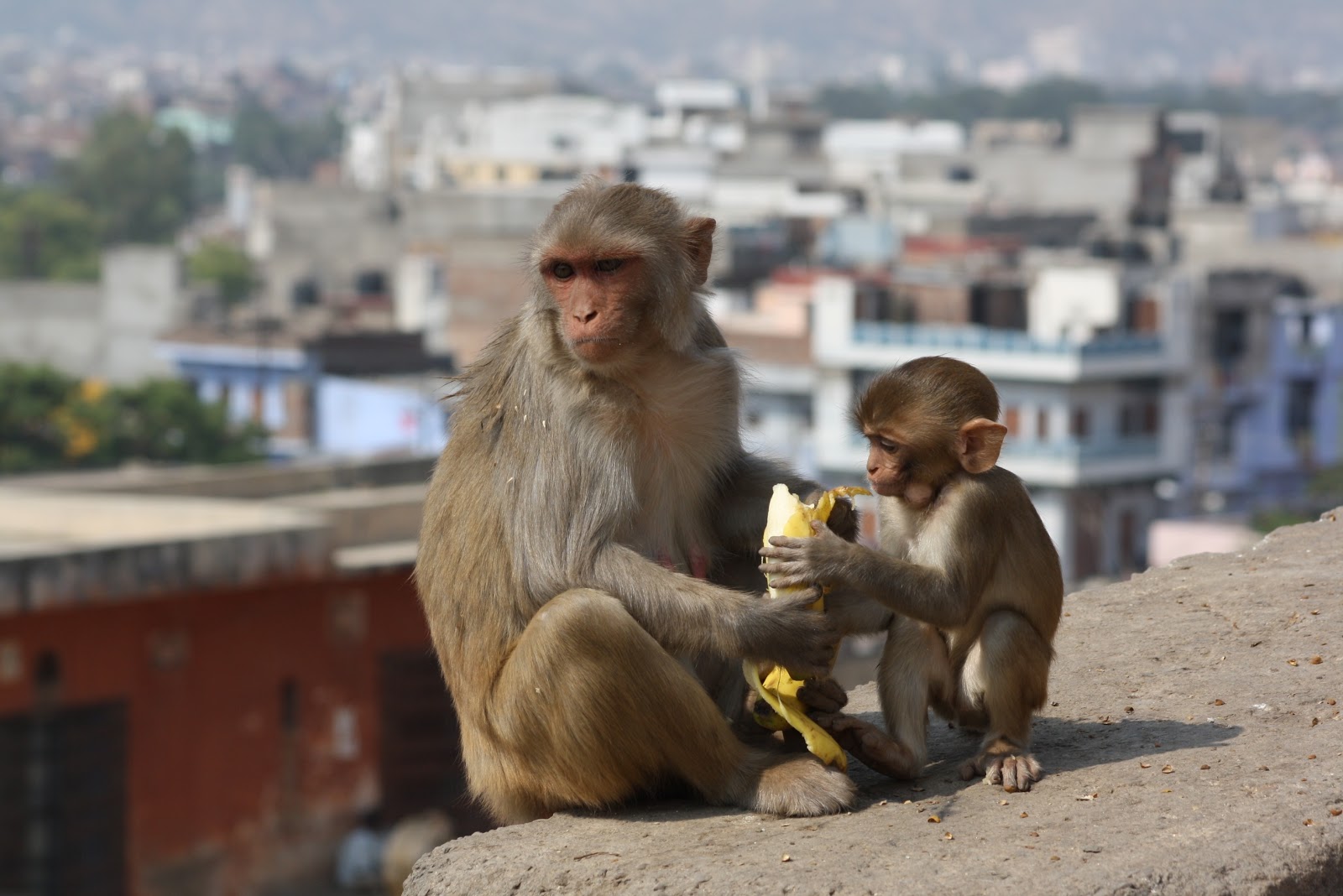 Todos los templos de India están plagados de monos, monos agresivos, a Arantxa la atacó uno cuando se estaban mirando los dos fijamente. Nos contaron después que se suelen lanzar a quitar las gafas para que les des comida a cambio de que te las devuelvan. A si que cuando estabamos subiendo hacia el templo se acerco un niño con un palo para ofrecerse a espantarnos los monos.