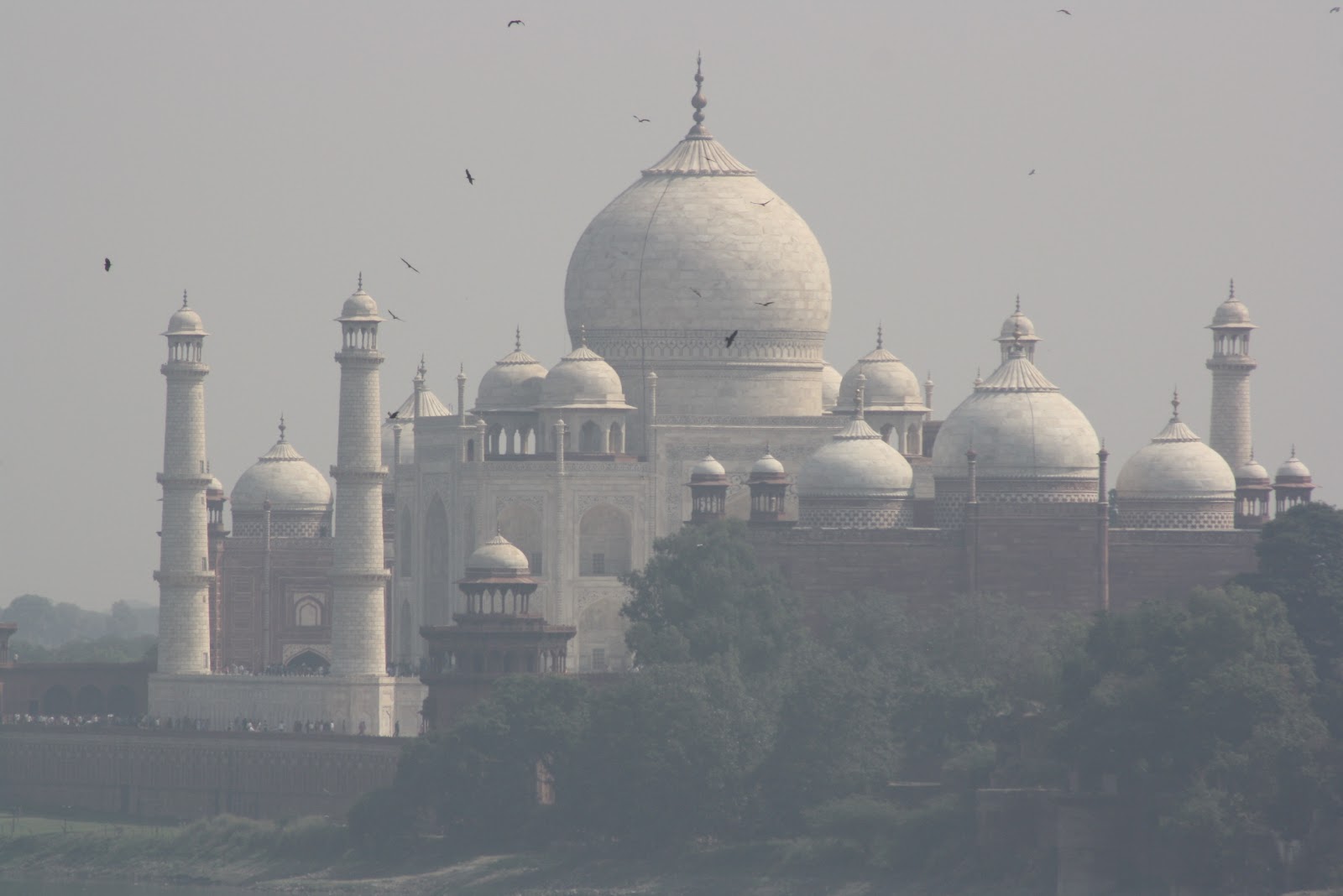 Después de pasar el control de cacheo y escáner, emocionadas, nos dirigimos hacia una de las puertas donde sacamos el trípode para hacernos una foto y en cuestión de segundos se dirigen a nosotras dos soldados con metralleta para decirnos que el trípode está prohibido y nos hacen salir del recinto para desacernos del trípode, pero no antes de dejar claro que no volveríamos a hacer cola de nuevo (todo esto sin haber visto ni de lejos todavía el Taj). ¡¡Pero por fin lo conseguimos!! Estamos frente el Taj Mahal.
