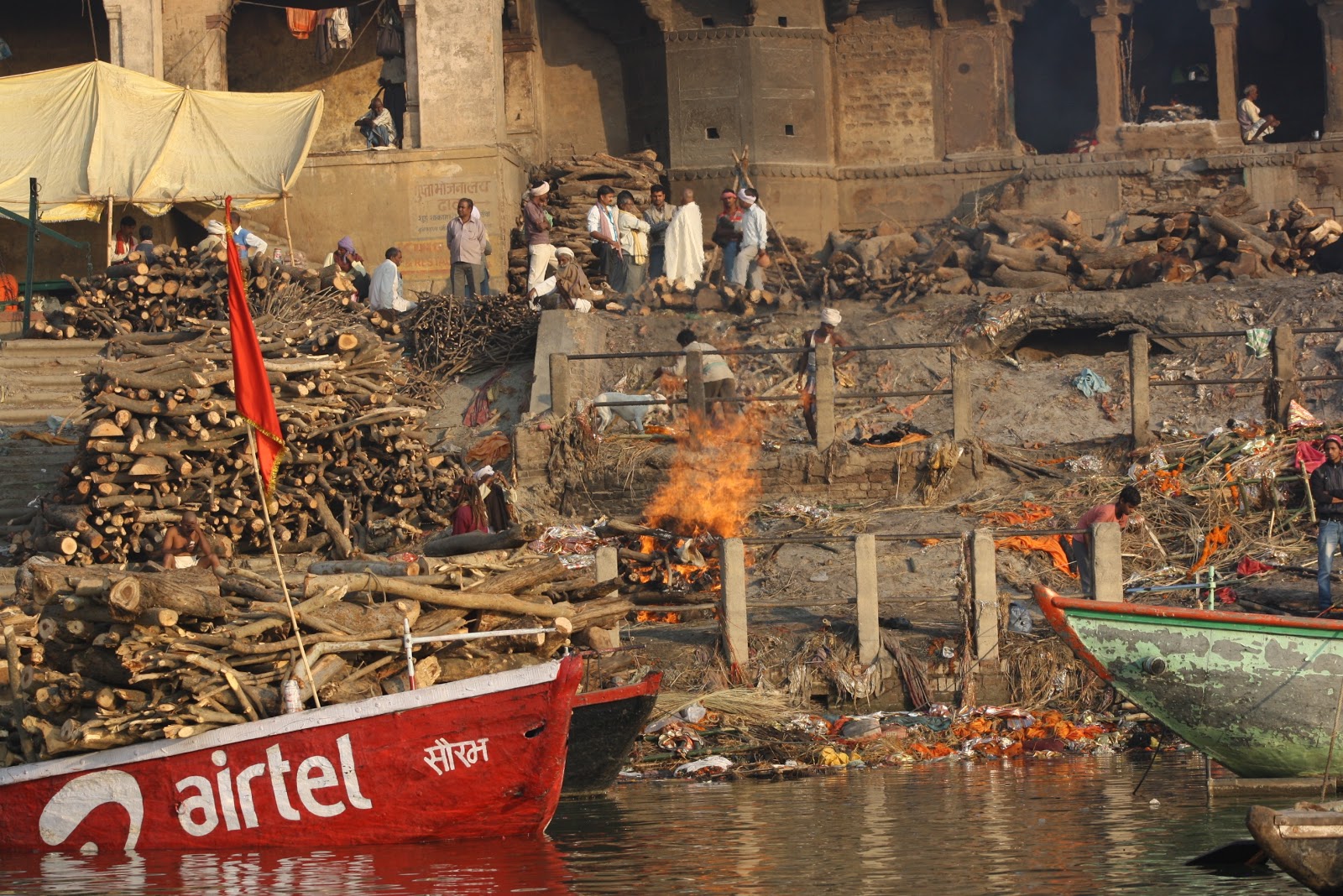 Las cremaciones son constantes en el ghat de Manikarnika, pueden realizarse entre 50 y 200 al día. Las mujeres son quemadas boca abajo y los hombres boca arriba, las mujeres embarazadas, niños y hombres santos son arrojados al Ganges, al igual que el resto de las cenizas. Es un auténtico espectáculo aunque las escenas son realmente duras.