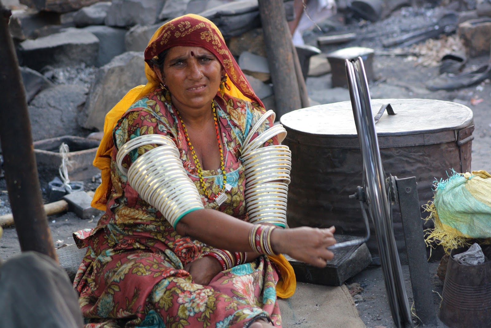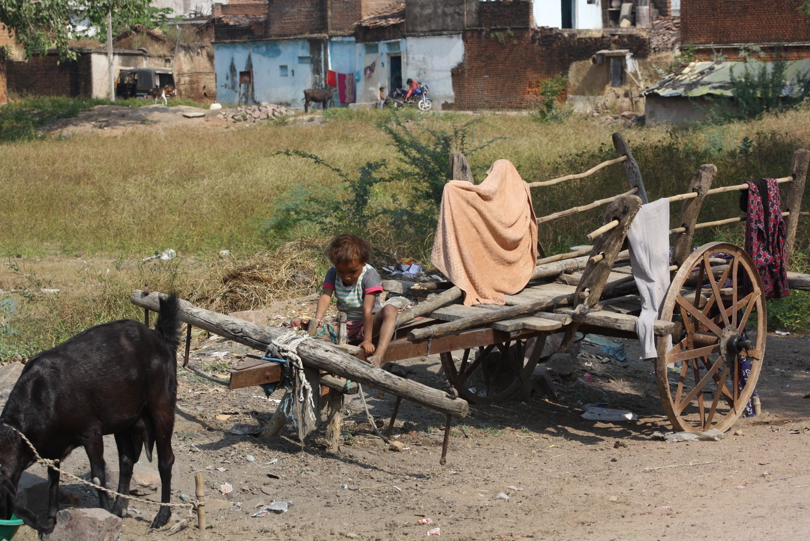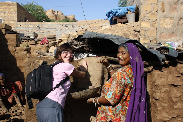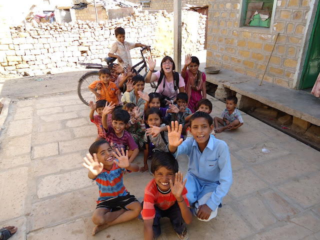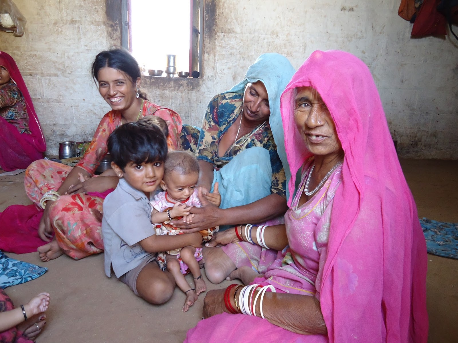 De camino a Jodhpur (286 km.) paramos en Pokra, una aldea donde nunca paraban turistas, allí conocimos a esta familia gracias a Swroop, nuestro chóferFué un auténtico lujo para nosotras. Sus caras eran de asombro y al mismo tiempo de agradecimiento por habernos acercado a su casa. Entre aquellas cuatro paredes vivían doce personas, solo tenían unos pucheros para cocinar, dormian todos juntos en el suelo de arena, una imagen que nunca se nos olvidará. Los niños nunca habían visto turistas y lloraban si nos acercábamos. Al final conseguimos darles unos juguetes, no hubiéramos quedado todo el día, pero Swroop nos dijo que teníamos que irnos, recorrer 286 km. en India no era tarea fácil, eran los kilómetros que nos separaban de Jodhpur. Se supone que recorrer esa distancia nos llevaría unas cinco horas pero entre paradas y demas fueron unas seis horas y media.