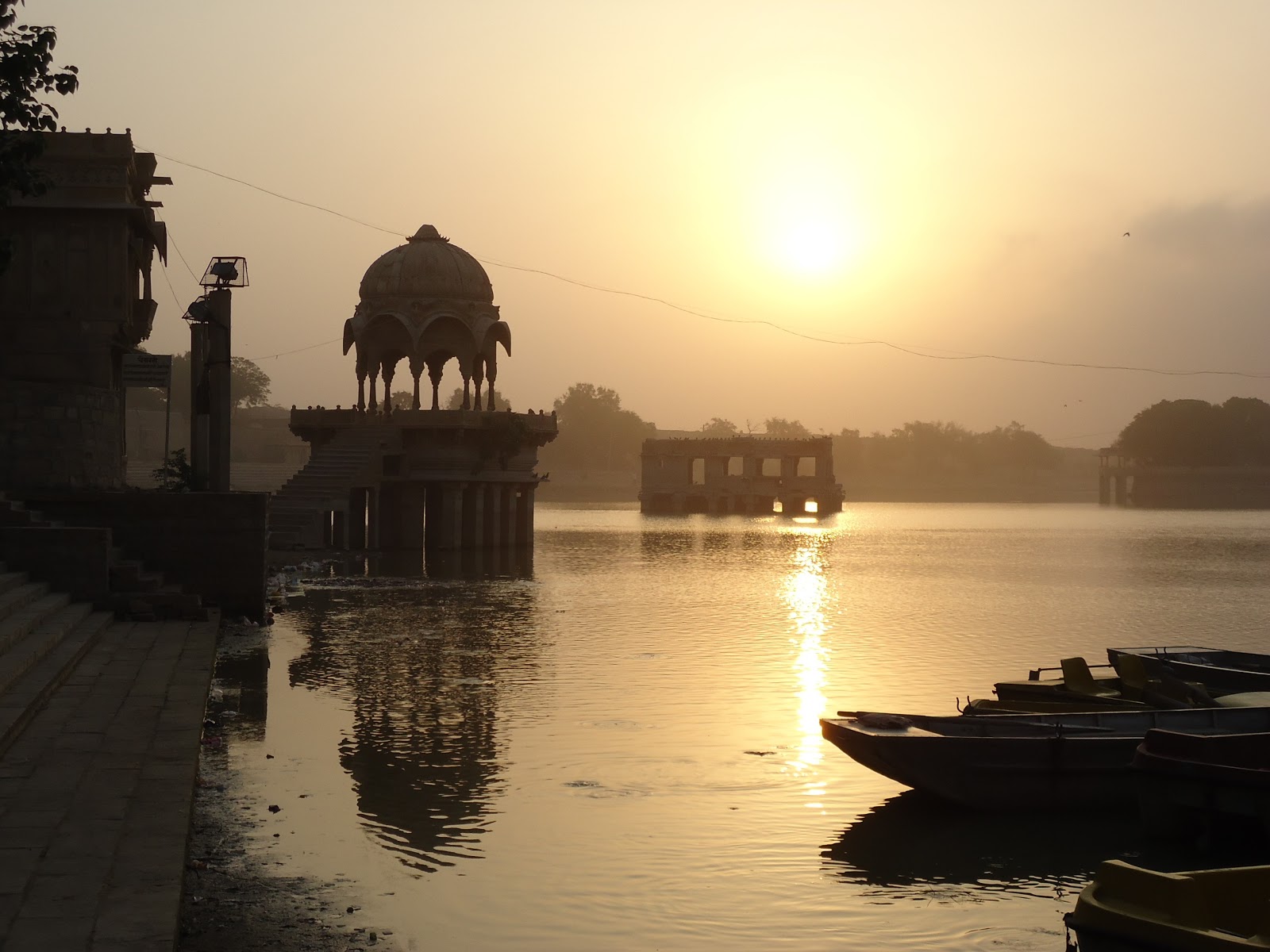 Nos levantamos temprano para ir a ver amanecer al Lago Gadsisar antes de ponernos en camino a Jodhpu, no había ni un alma, disfrutamos de aquel espectacular amanecer en soledad, en un absoluto silencio, unicamente el ruido que producía el chapotear de los peces gato que se acercaban a la orilla en busca de alimento.
