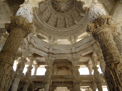 De camino a Udaipur, exactamente 75 km antes, hicimos parada en Ranakpur, conocido por su espectacular templo de mármol, Jaina.