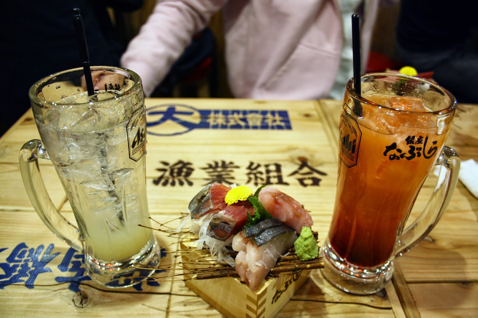 Y como colofón final a nuestro viaje, nos despedimos tomándonos una copa que como tapa nos pusieron varias clases de pescado crudo. Lo único que sabíamos lo que era con certeza era el atún que no pudimos resistirnos a probarlo.