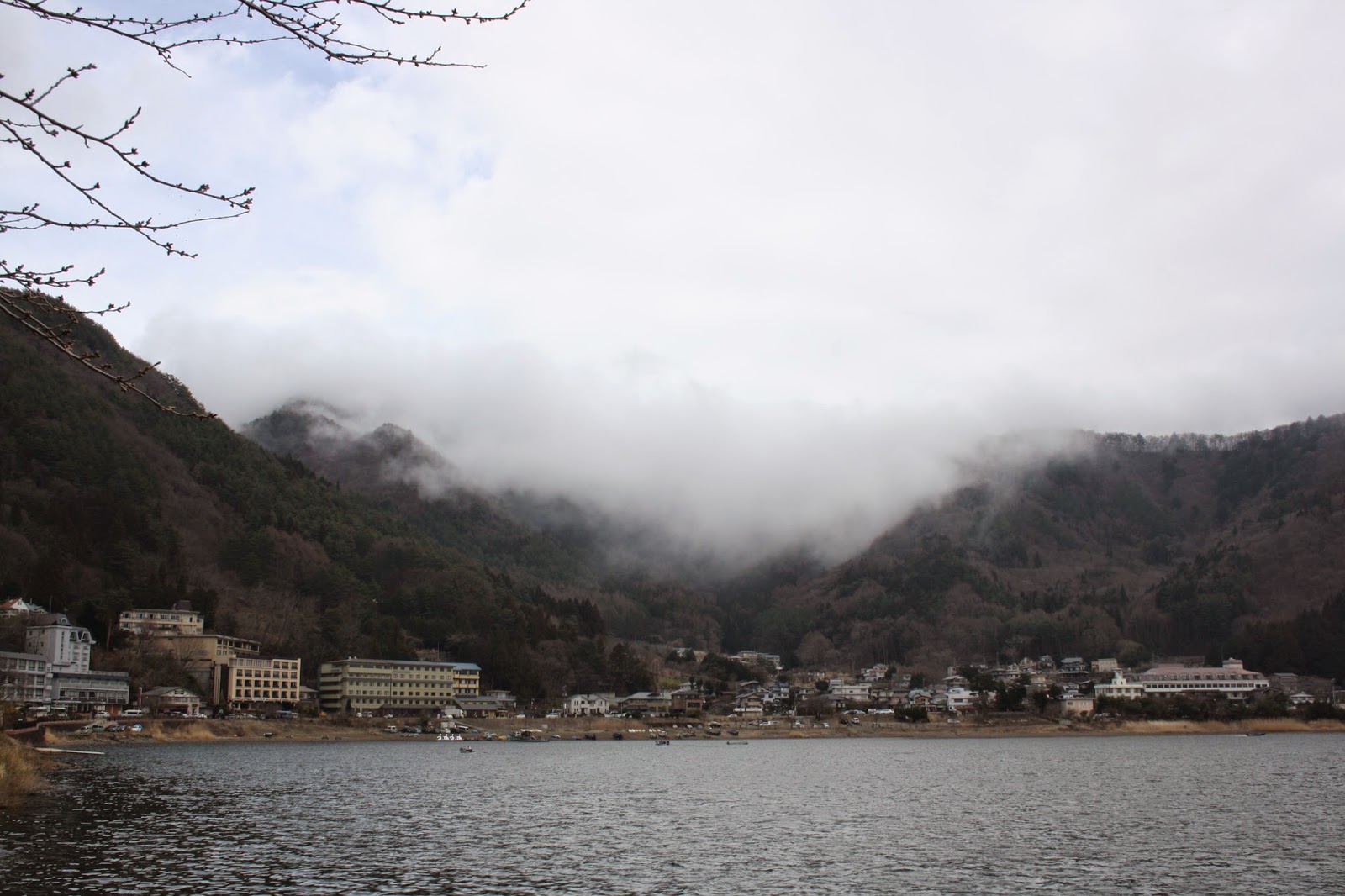 A diez minutos andando desde la estación está el lago donde se pueden hacer paseos en barca o subir en teleférico para tener vistas del Fuji. Nos pusimos a andar por la orilla del lago unas dos horas, recorrimos la mitad del lago, pero fue imposible verlo, todas las nubes del mundo estaban allí concentradas.