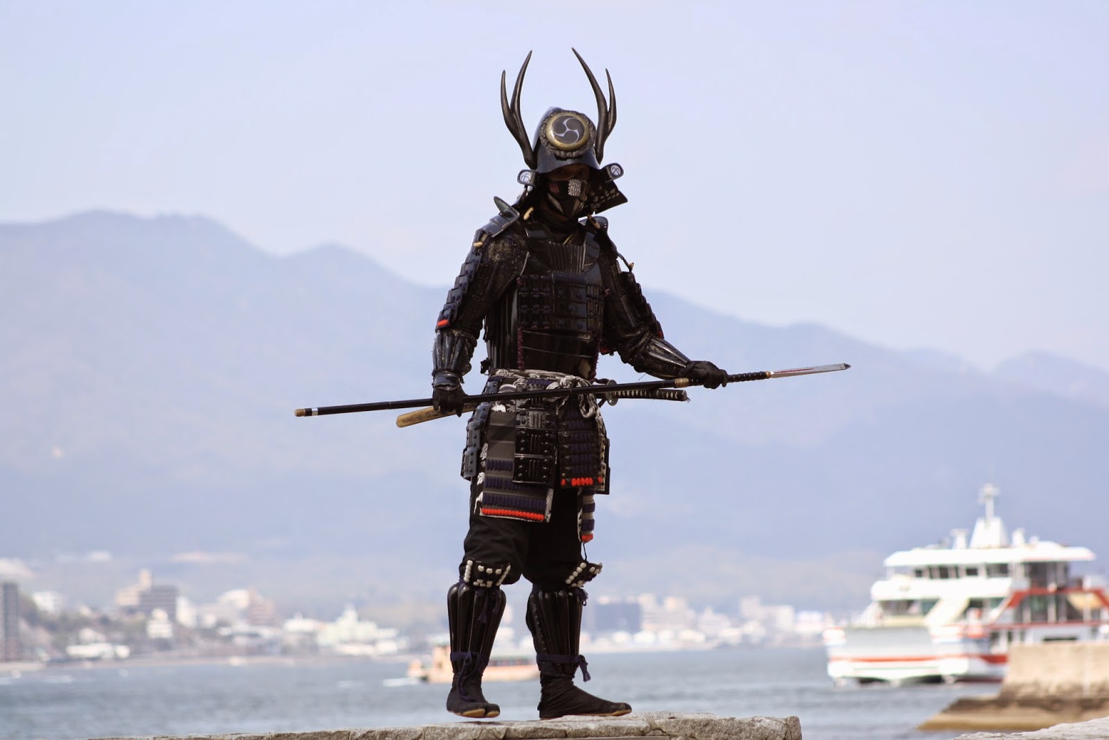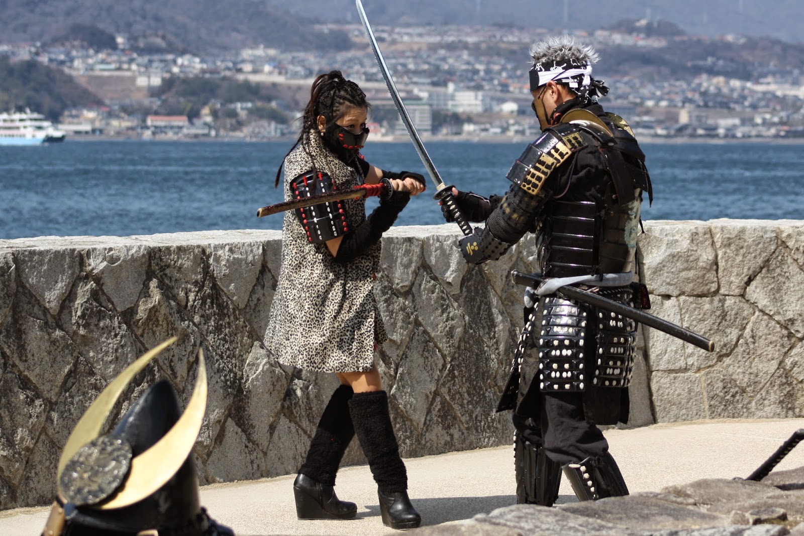 Cuando volvíamos a coger el ferry de vuelta a Kyoto nos encontramos con estos personajes promocionando su tienda de disfrces guerreros donde también enseñan a luchar. La verdad es que no daba la sensación de éxito.