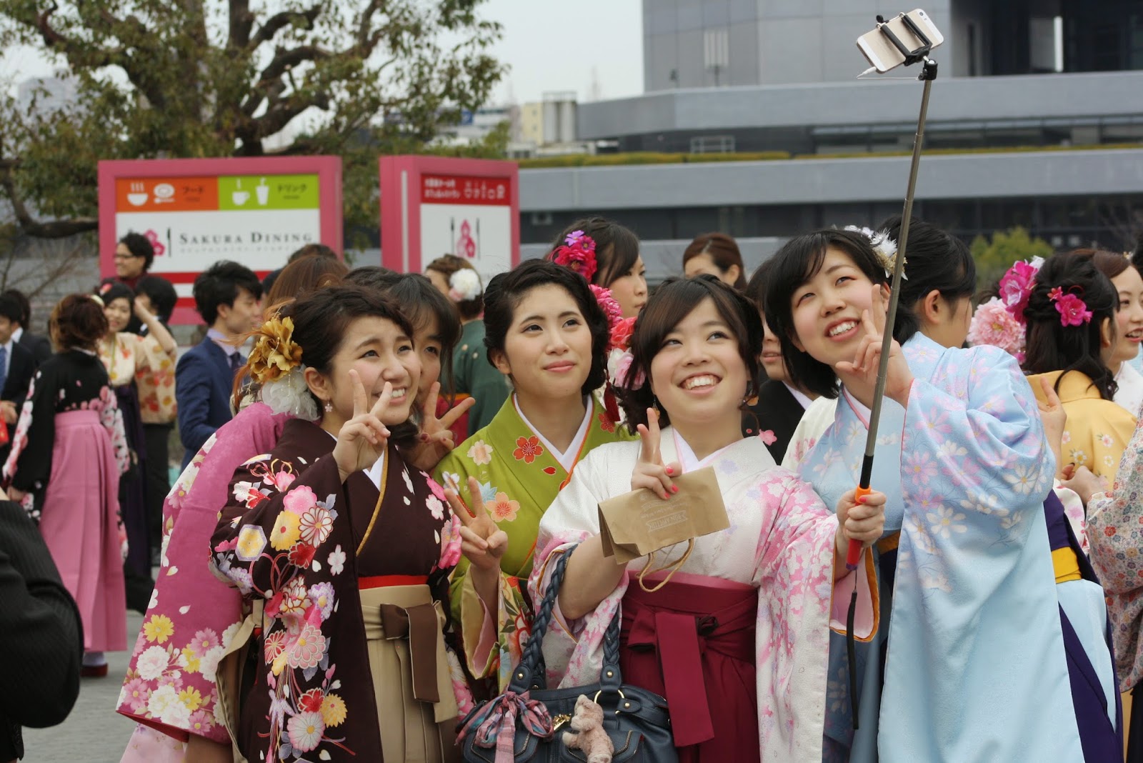 Todos iban de punta en blanco, las chicas con sus kymonos y los chicos con sus trajes.