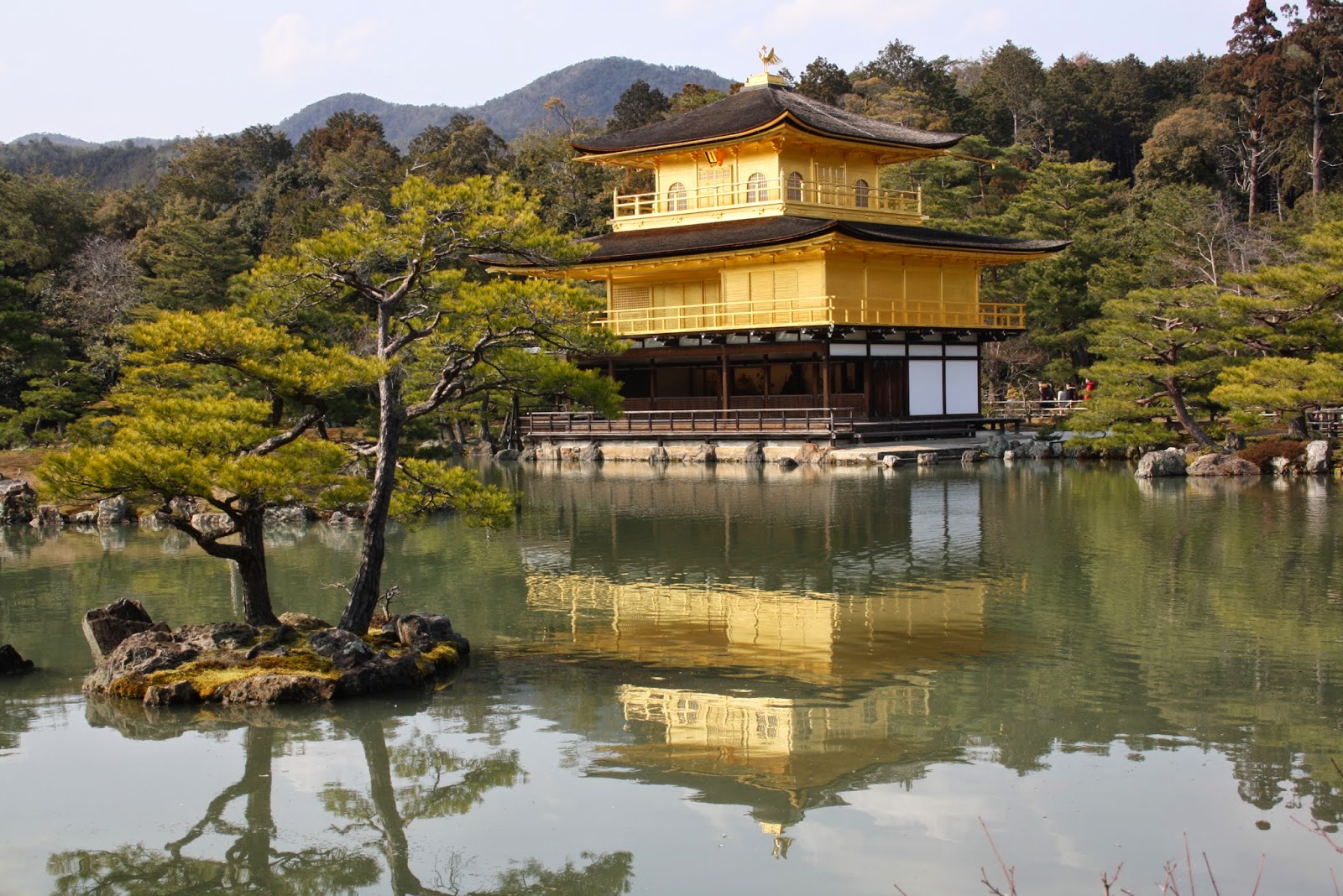 Kinkakuji (Pabellón dorado, 400¥). El edificio original se construyó en 1397 como casa de retiro para el sogún Ashikaga Yoshimitsu. Su hijo lo convirtió en templo.