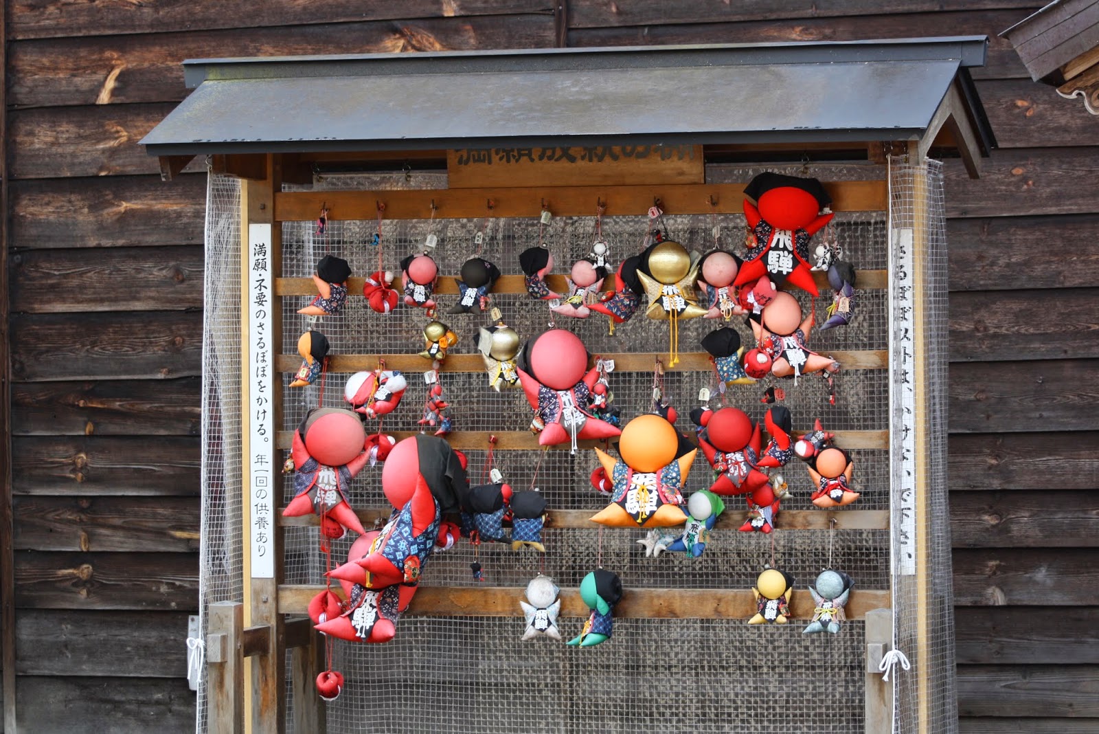 En el templo Hida Kokobun-ji las ofrendas son peluches de Sarubobo que significa bebe mono, es un amuleto para la proteccción de espíritus malignos.