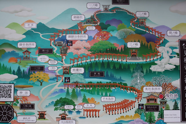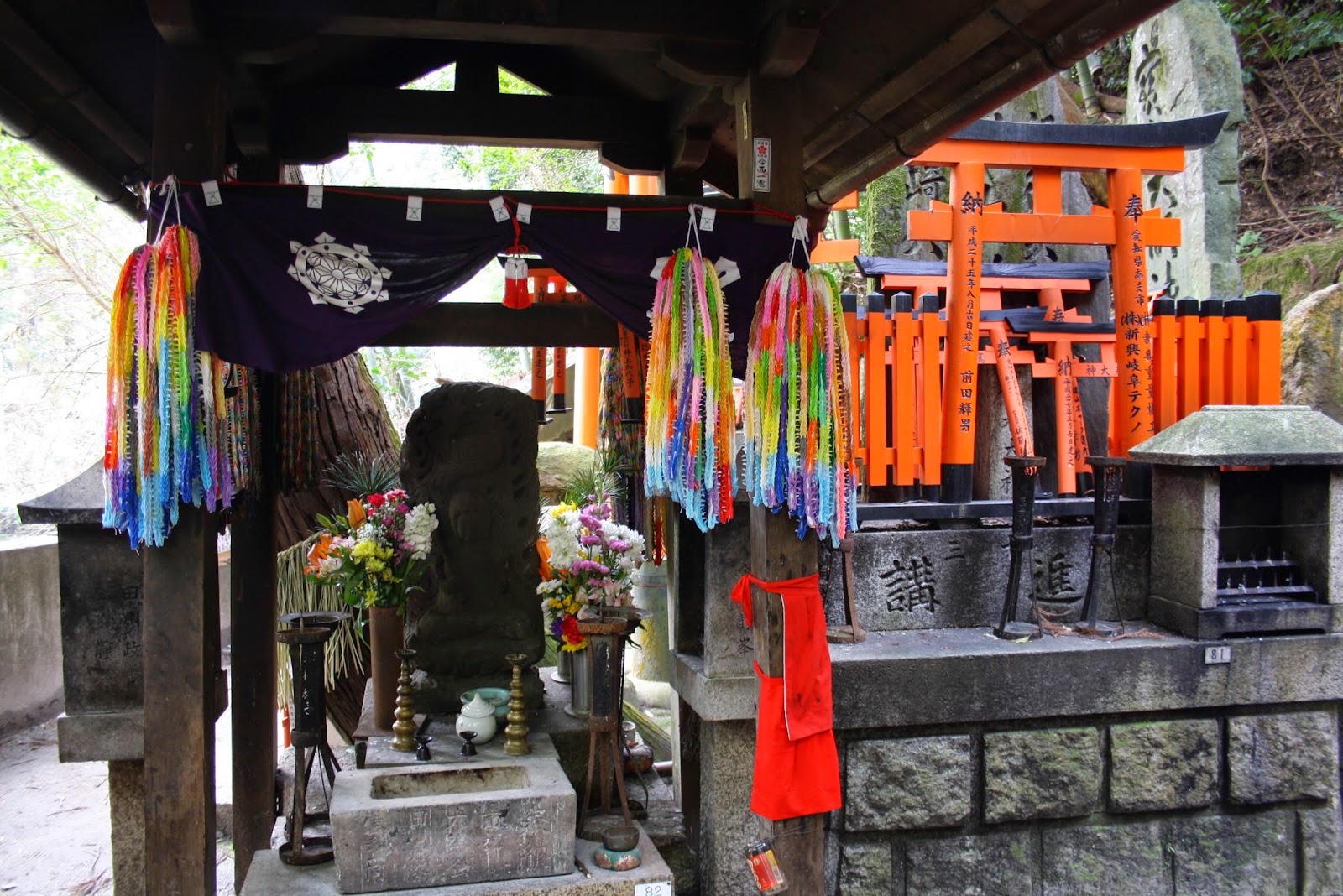 Durante el sendero que de toriis aparecen cementerios y santuarios en miniatura llamados bunsha, muchos de ellos custodiados por zorros a ambos lados que son considerados mensajeros de Inari y Dios de la cosecha de arroz. La llave que portan en la boca simboliza su protección.