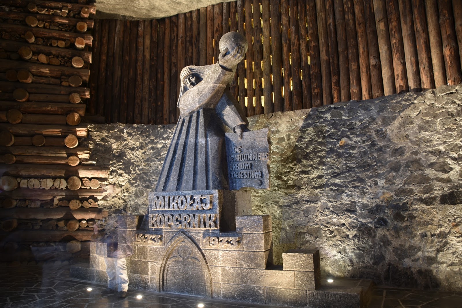 A lo largo del recorrido te vas encontrando con distintas cámaras excavadas en sal, y adornadas con excepcionales esculturas de sal, como ésta del astrónomo polaco Nicolás Copérnico.