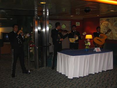 Lo primero presentaros nuestro barco, bueno, el barco, que de nuestro tiene poco, de la compañía Pullmantur Cruises, todo incluído (cuando se vaya a hacer un crucero totalmente recomendado y que el camarote sea interior, porque además de ser mucho más barato apenas se pasa tiempo en él, a veces ni para dormir jajajaja). Embarcamos en Santo Domingo. Antes de embarcar nos recibieron con un cóctel y musiquita.