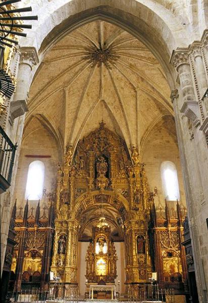 G) La bóveda fue diseñada por Juan de Colonia y realizada por Francisco Díaz de Presencio en el año 1450. Consta de 400 m2 de superficie. El coro gótico fue realizado en el siglo XV en madera de nogal consta de 84 sitiales.
