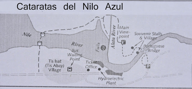 De repente allí estaba la cascada del Nilo Azul con sus 40m. de altura. No era su época más esplendorosa pero caía agua suficiente para causar un ruido ensordecedor.