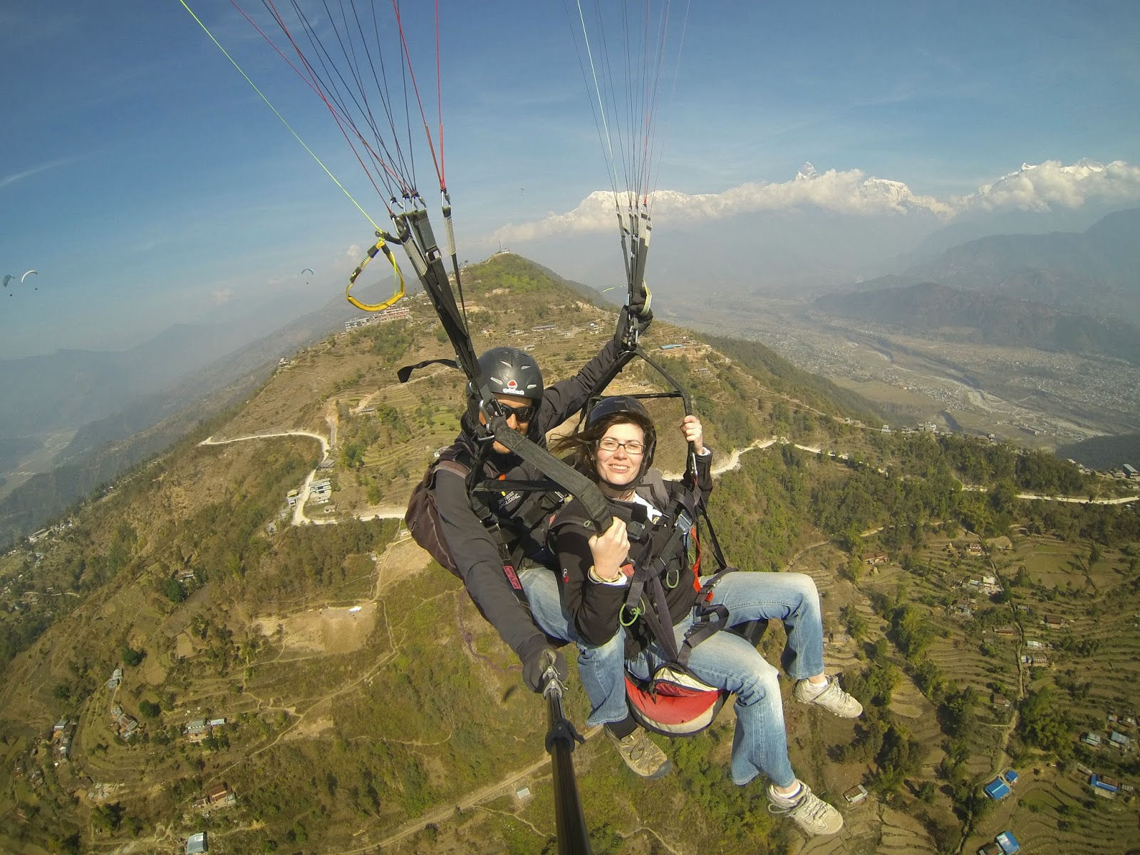 Pokhara esta lleno de sitios donde te ofrecen hacer parapente, nosotras lo contratamos con Frontiers Paragliding 7.500 Rupias 30 minutos.