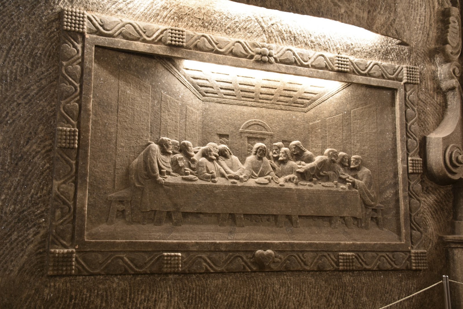 Esta capilla está adornada con excepcionales obras de arte talladas en sal. En una de sus paredes está la última cena de Da Vinci.