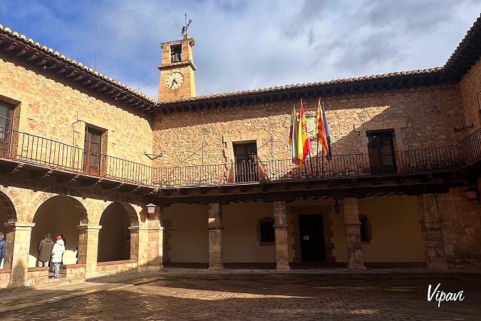 Uno de los primeros lugares en los que conviene detenerse es la Plaza Mayor. Es el centro más reconocible de Albarracín y un buen punto para orientarse. Es una plaza pequeña, pero con mucho carácter. Está rodeada de edificios históricos, soportales y balcones.