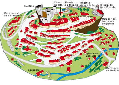 Entre el castillo y la iglesia de San Vicente fue creciendo una auténtica ciudad de estrechas calles y pequeñas plazas que albergó una importante población de comerciantes y artesanos y una notable comunidad judía.