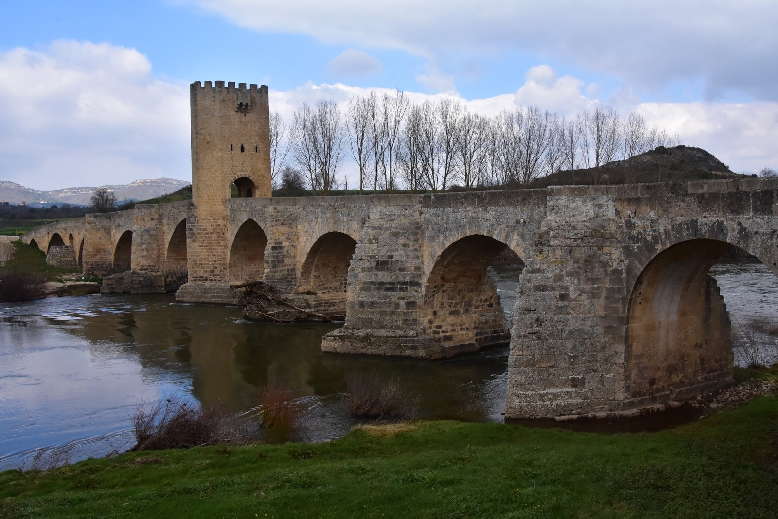 El puente medieval construido aprovechando la roca que afloraba por el río, era paso obligado de la vía comercial que unía la meseta y la costa cantábrica. Así, en el siglo XIV, se construyó una torre para controlar el paso y cobrar el impuesto de portazgo. Tiene 143 metros de largo y 3,45 metros de ancho.